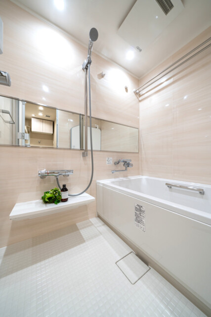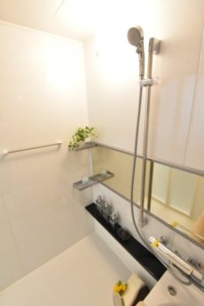 次は浴室。水回りは全体的に白が基調で清潔感にあふれていますね。