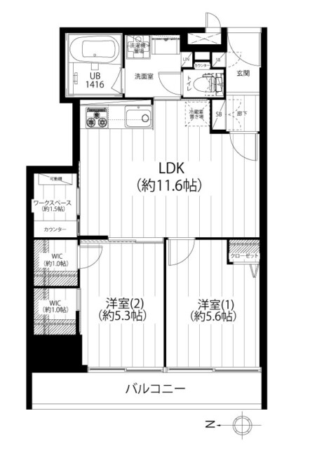 間取りはLDKと振り分けタイプの洋室が二つですね。LDKの横のワークスペースがイマドキっぽいですね。どんな感じでしょう?