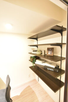テレワーク仕様でしょうか?右側の棚は可動式です。