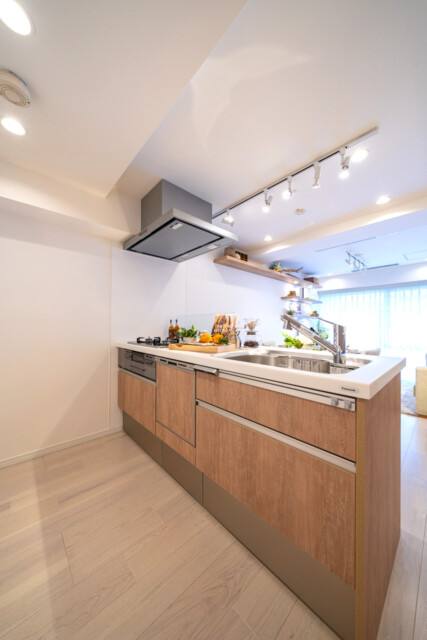 ■キッチン・・・システムキッチン新設、食器洗い乾燥機新設、蛇口一体型浄水器新設、キッチンカウンター造作