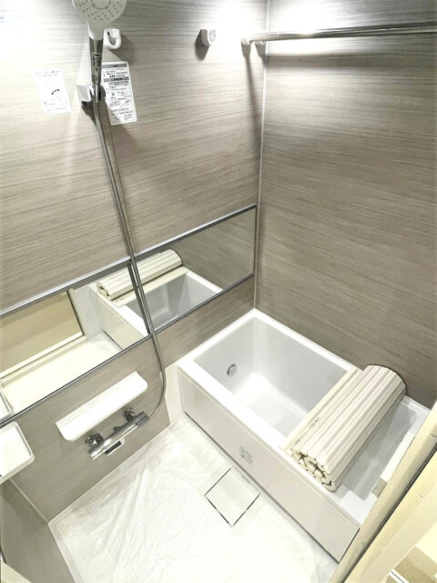 浴室は木目パネルを使用。真っ白も清潔感があつていいですが、こんな感じも落ち着いていていいものですね。追い焚き機能付きユニットバスはスイッチ一つでお風呂をわかし、保温してくれるのでいつでも温かいお風呂に入ることが出来ますよ。雨の日に便利な浴室乾燥機付き。