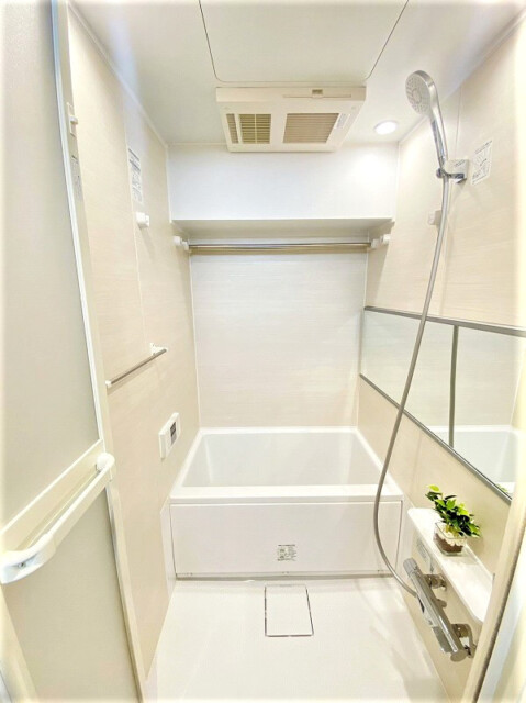 浴室はコンパクトな1014サイズ。広いお風呂に憧れなくもありませんが、水道光熱費が少なく済んだり、浴室がすぐ温まったりといいところもあるんですよ。機能面では追い焚き機能や浴室換気乾燥機など充実!ボタン一つでお風呂が沸かせる追い焚き機能は一度使ったら止められません♪