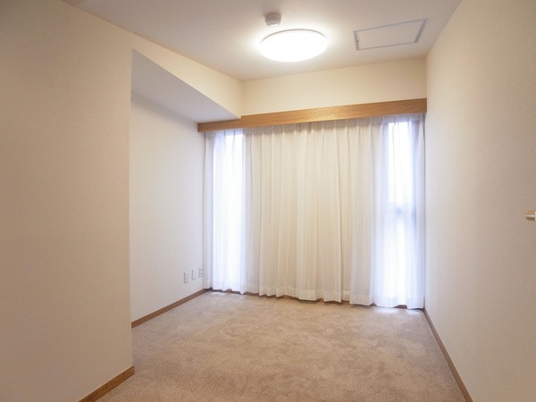 廊下の突き当りに9.1帖の洋室があります。南側から東側にかけて窓がついていて、こちらからもバルコニーに出ることができます。