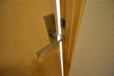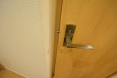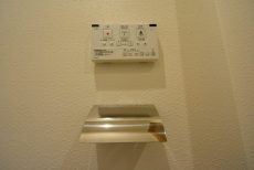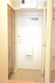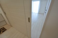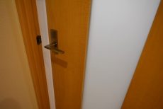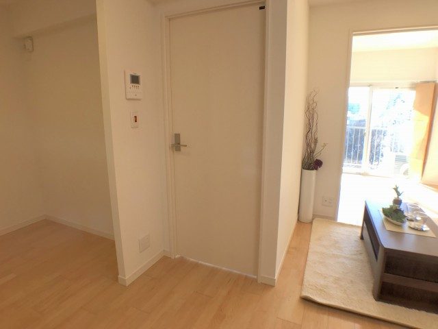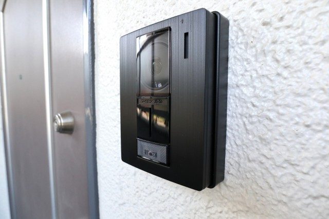 ドア横にはモニター付きインターホンが設置されていて、お部屋の中から訪問者を確認する事が出来ます。ドアスコープもありますが、玄関まで来る必要がないのがいいですよね。それに、向こうからも覗かれているみたいでなんか緊張しませんか^^;)