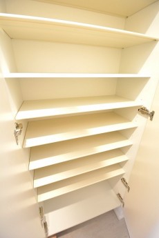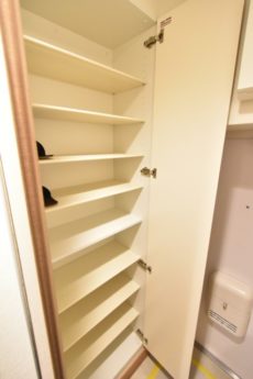 玄関横のシューズボックスはトールタイプ。天井まで使って収納出来るので収納力は抜群!可動式の棚を調節すればブーツなどでも立てて収納可能ですよ。