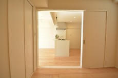 可動扉をあけてキッチン側と隣の洋室をつなげて利用することもできます。小さいお子様がいるご家庭なら、子供を洋室で遊ばせて様子を見ながらお料理、というのも便利かも。