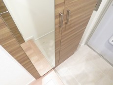 玄関横に設置されたシューズBOXはたっぷり仕舞えるトールサイズ。表扉の一部には縦長の鏡がついており、お出かけ前の身だしなみチェックもサッと行えます。