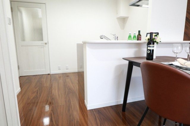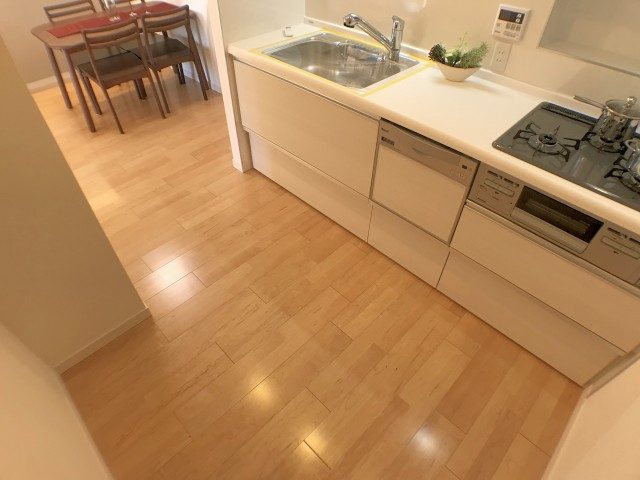 こちらから見ると、キッチンはほとんど見えないんですね。今はカウンターキッチンなどのオープンなタイプが主流ですが、お料理好きからは「お料理に集中出来ていい」と独立タイプが支持を受けているらしいですよ。