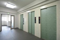 1Fには管理人室があり、その奥にエレベーター3基あります。