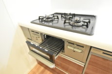 コンロは3口、グリルも付いています。グリルって魚グリルと呼ばれる程魚イメージが強いですが、なにも魚専用の調理器具ではありません。肉でも野菜でも、なんでも美味しく調理出来るのでどんどん使っていきましょう。