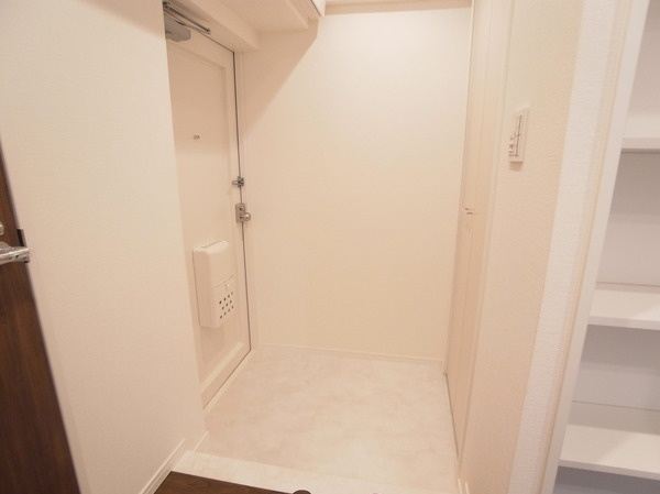廊下に上がってすぐに洗濯機置場があります。扉も付いているので、ちゃんと目隠しもできますよ☆サニタリールームとは別になりますが、洗濯機置場のすぐ右側がサニタリールームなので、洗濯物をいっぱい持って長距離移動。。。は無くて済みそう♪