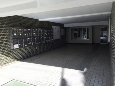 こちらがマンションエントランス。エントランス前の左右に現在空無しですが敷地内の駐車場があります(月額17,000円)。