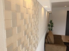 一部壁にはエコカラットで装飾が施されています。エコカラットは、湿度を調節してくれる優れもの♪♪