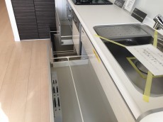 キッチンは上下に収納があり調理道具がたくさん入れられそうです♪シンク下の収納は、スライド式なのでキッチングッズの収納も楽々 (●´∀`)配管を気にせず収納できるので大容量。