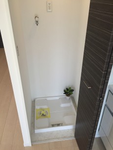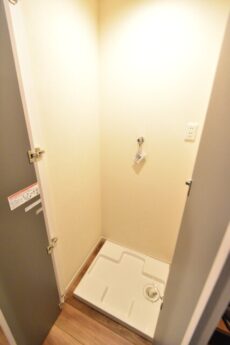 廊下へ出てすぐ左には洗濯機スペースがあります。扉に隠されていて生活感も全くナシ!