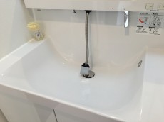 配管をあえて見せる、シンプルなデザインの洗面化粧台です。