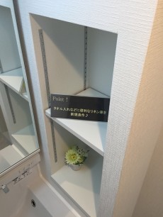 洗面台の右手には、リネンの収納に嬉しい棚も設置されています♫