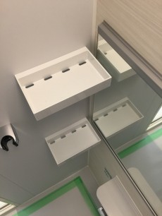 鏡裏は収納としてお使いいただけるので、身だしなみを整える用の小物はこちらに全て収納してしまいましょう。