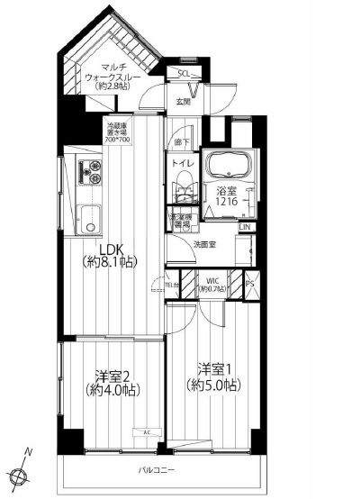 間取りのご紹介です。2LDK、45.22㎡。4階。