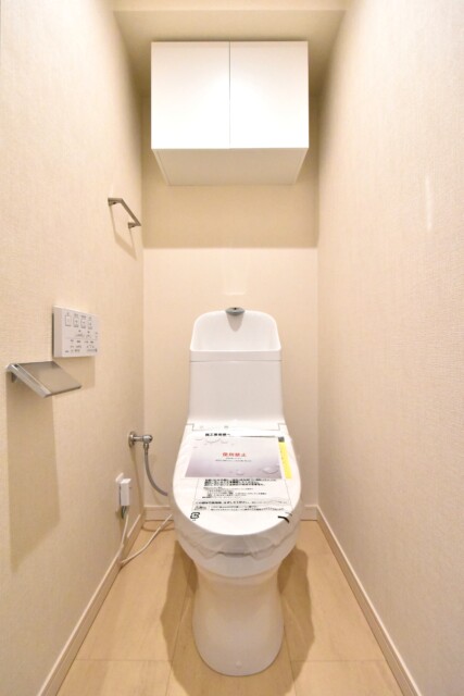 トイレは優しい色でコーディネートされていて清潔感があります。
