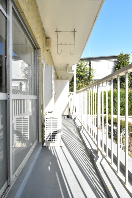 こちらがバルコニーです。格子手摺なので、通風も採光も確保されています!が、雨の際は洗濯物が濡れやすいので、急なゲリラ豪雨には気を付けましょう。