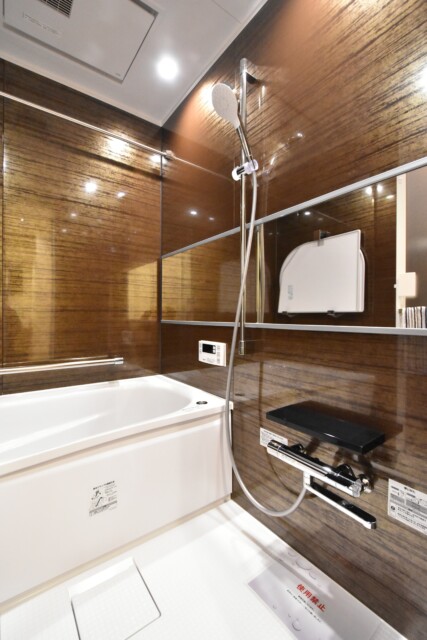 浴室暖房換気乾燥機付。暖房機能だけでなく、涼風機能もあります。真夏の暑い日に、シャワーを浴びつつ涼風でクールダウン、なんてこともできちゃいます。