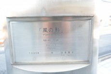 風の形というステンレスアート、ブロンズ像が歩道沿いに飾られています。