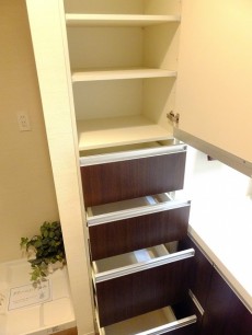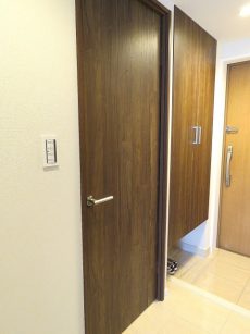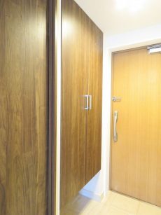 玄関横の木目調の扉の中はシューズBOXになっています。