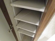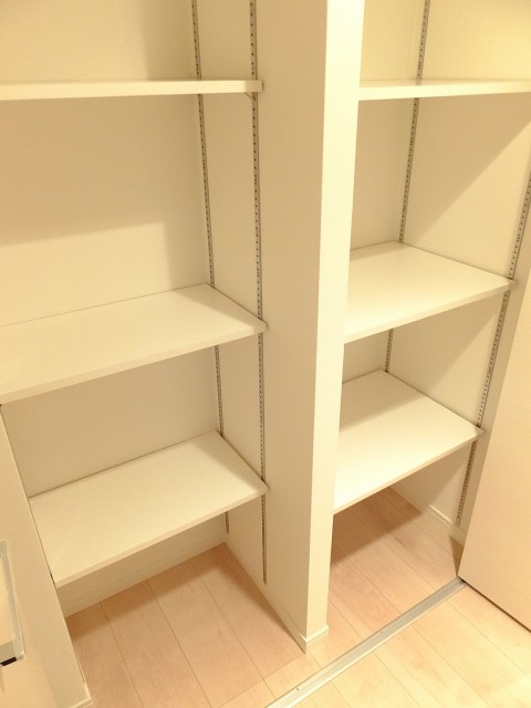 廊下の右側は大きな収納庫になっています。可動式の棚があるので、用途に合わせて、天板の位置を変えれば、機能的に収納できそうですね(^v^)