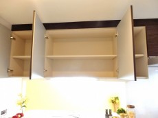 収納は上にも下にもたーっぷりありますよ☆キッチンスペース自体が広いので、後ろに食器棚も置いておけます!!
