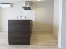 キッチンスペースに余裕があるのでちょっとした収納家具も置いても大丈夫そうですね。