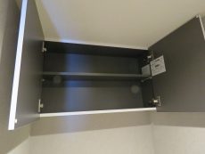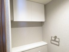 サニタリー用品は吊戸棚へ、おしゃれな芳香剤などはカウンターへと分けて置けるのがいいですね。