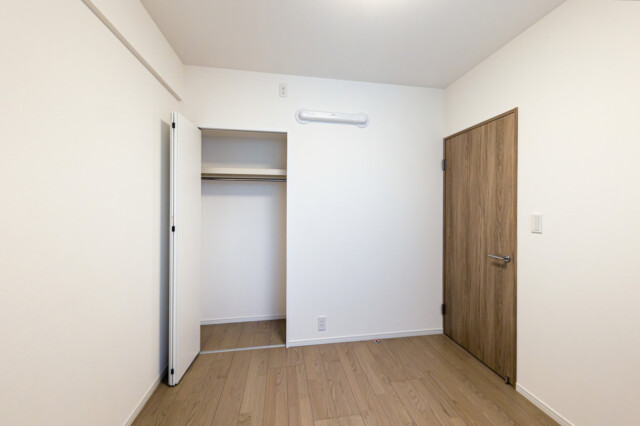 洋室の中では一番大きくメインの寝室にお勧めのお部屋です。一番のポイントは大きなウォークインクローゼット!!!ハンガーパイプだけではなく可動棚も設置されバランス良く収納が可能です。衣類以外にも、スーツケースやシーズンオフの家電などを置いておくのにも使えますよ。