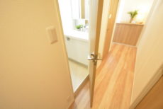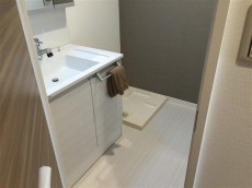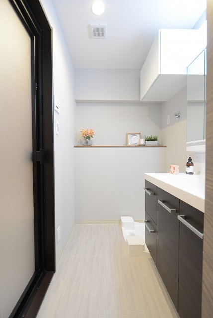 奥には洗濯機置場も見えますね。洗面室は脱衣所も兼ねているので脱いだお洋服はすぐに洗濯することが出来ますよ。
