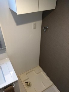 お隣は、洗濯機置場☆上部には、収納棚もバッチリです♪♪