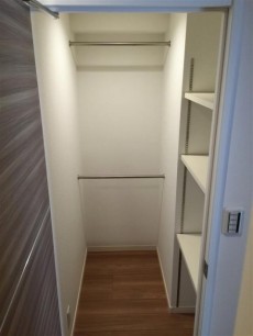次はマルチウォークインクローゼット。奥行きがあって手前には背の高い物もそのまま収納出来ます。位置的に、服を掛けると棚が使えないような気がしますので、どちらかで使うって事ですね。