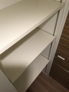 棚板の高さは調節可能なので、掃除機のような大き目の家電でも収納可能です。