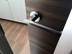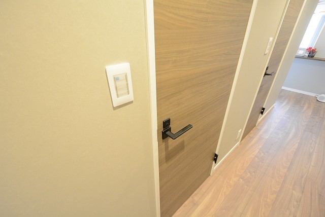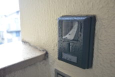 玄関ドア横にはテレビモニター付きインターホンが設置されていて、お部屋の中から訪問者を映像で確認する事が出来ます。すぐに返事をしないで確認すれば、しつこいセールスにつかまる事もありませんね。