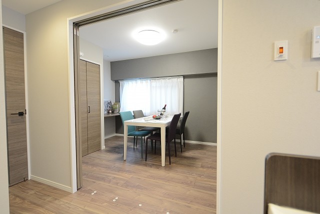 キッチンからお隣を見ると、お部屋が繋がっていました。