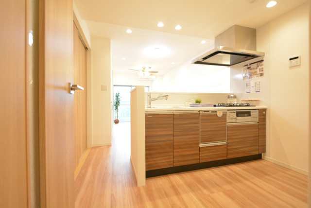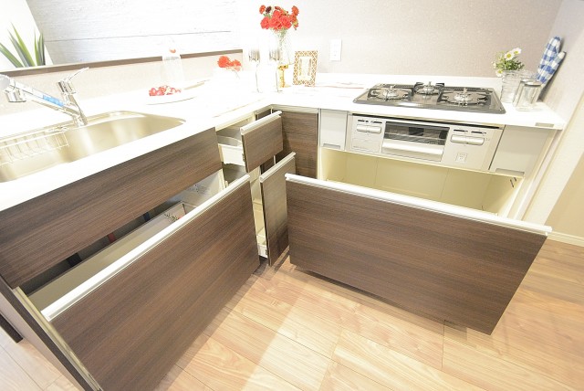 調理台下は収納と食器洗浄乾燥機になっていました。憧れの食洗機・・・これで食後はみんなでのんびり過ごせますね♬