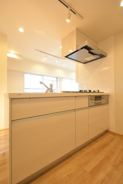 白を基調とした清潔感のある対面式のキッチン☆ゆとりがあるので冷蔵庫を置くスペースもバッチリ◎