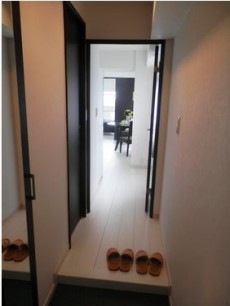 ドアを開けると正面にはシューズボックス。玄関とお部屋との間にドアがありませんので、廊下をずらしてお部屋の中が見えないようにしているんですね。宅配便やフードデリバリーなどを使う機会も多いのでこれは安心(^^)