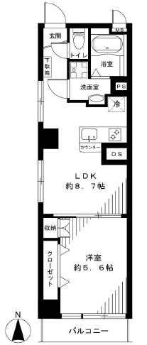 今回ご紹介のお部屋は5階、間取りは1LDK、専有面積は33.70㎡。お一人暮らしの方にお勧めです。