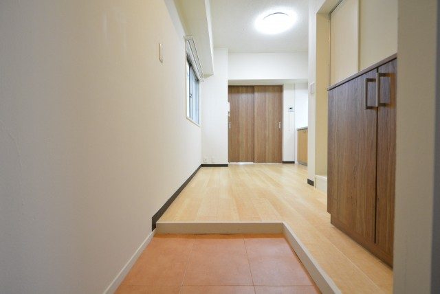 エレベーターで5階まで。静かな内廊下を進んで玄関へ向かいます。内廊下は防犯性が高い事や天候に左右されない事などがメリットです。