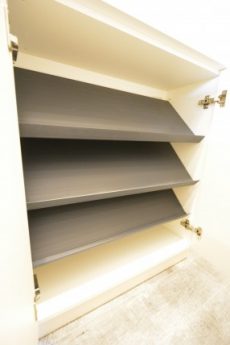 棚が斜めになっているので靴を探す面倒が省けます☆