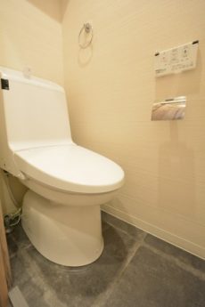 もちろん温水洗浄便座付き。TOTO製のウォシュレットです。ペーパーホルダーが二つでうっかり紙が無い!なんて事もありませんね^^;)