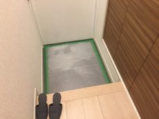 玄関はコンパクト。綺麗にリノベーションされています(●´∀`●)照明は人感センサー付きですので、扉を開けると自動的に照明がつきます。玄関は、段差が約26cm。少し大きめの段差です。