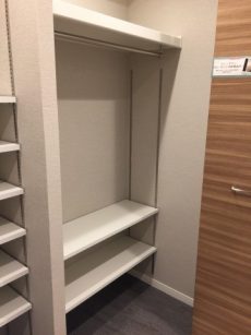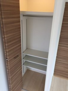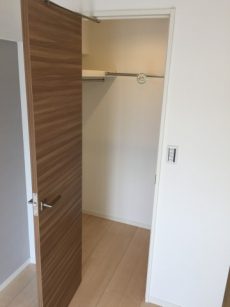こちらのお部屋の収納は、ウォークイン!!約0.9帖。右に左に広がっています。バーも付いているので、ロングコート等の衣類の収納にも良いですね♪♪