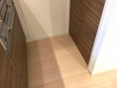 キッチンの後ろに扉付きの洗濯機置場がありました。洗濯機置場には扉が付いているので人目を気にしなくても済みそうですね。生活感を隠せるのでGood♪♪