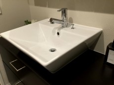 洗面台は、シャープな雰囲気♪♪洗面ボウルは小さめですが、サイドにスペースがありますので、身支度もゆったり(´∀`*)